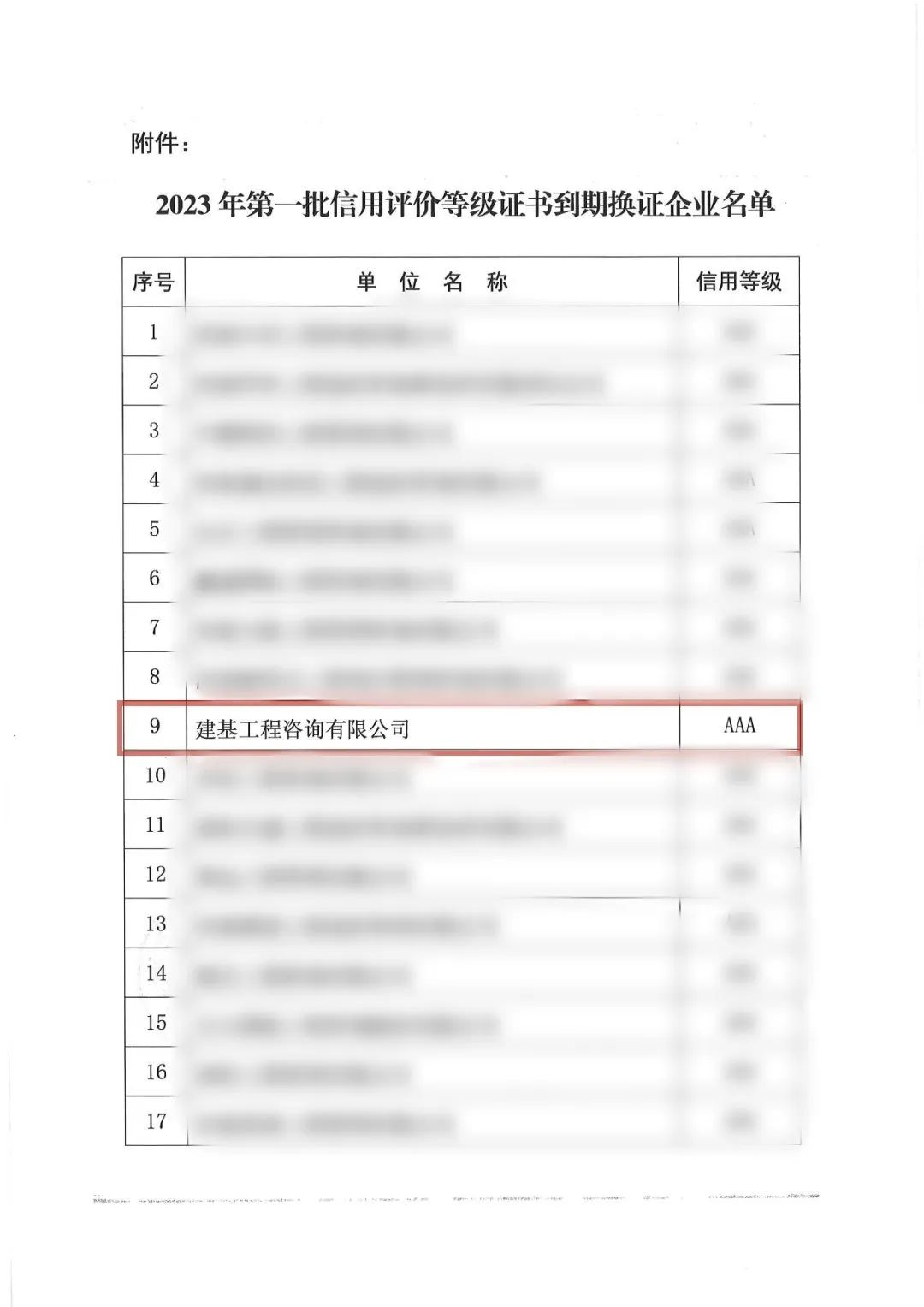 近日,河南省注冊造價工程師協會發布了《關于2023年第一批河南省工程造價咨詢企業信用評價等級證書到期換發新證的通知》。建基咨詢再次榮獲“工程造價咨詢企業AAA級”信用評價等級。