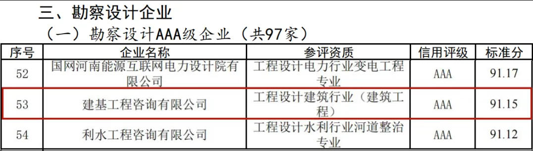 近日,鄭州市城鄉建設局發布了《關于發布2024年度鄭州市建筑企業信用評價結果的通告》,公司榮獲勘察設計AAA級企業、招標代理機構AAA級企業等榮譽。