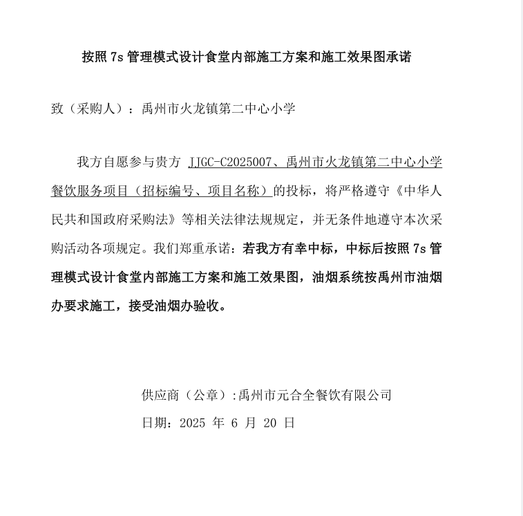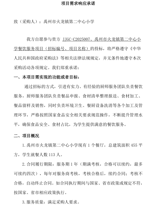 二、采購項目名稱:禹州市火龍鎮第二中心小學餐飲服務項目